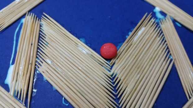 Poner pegamento en la espuma de poliestireno y ponerlo en el centro de la forma M