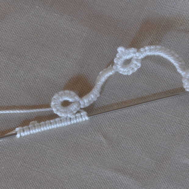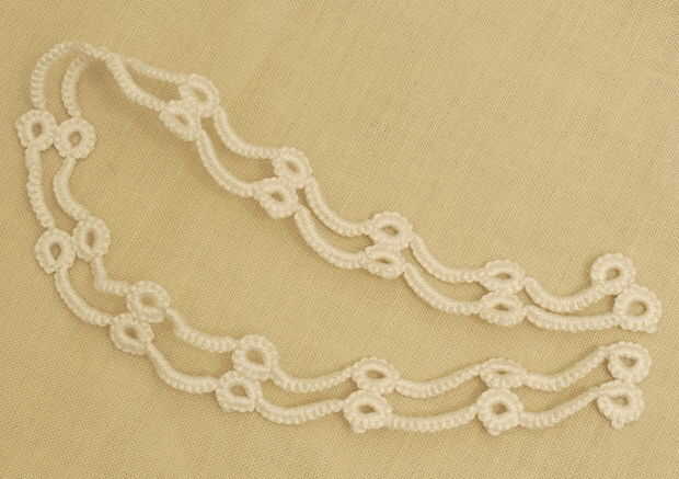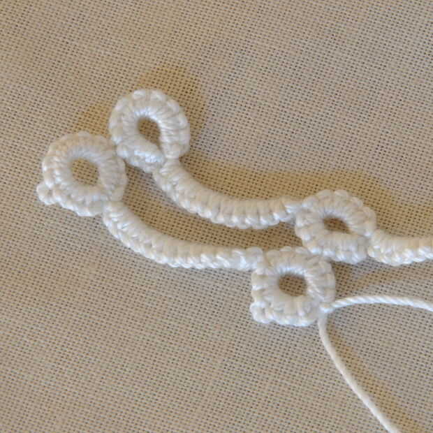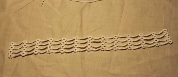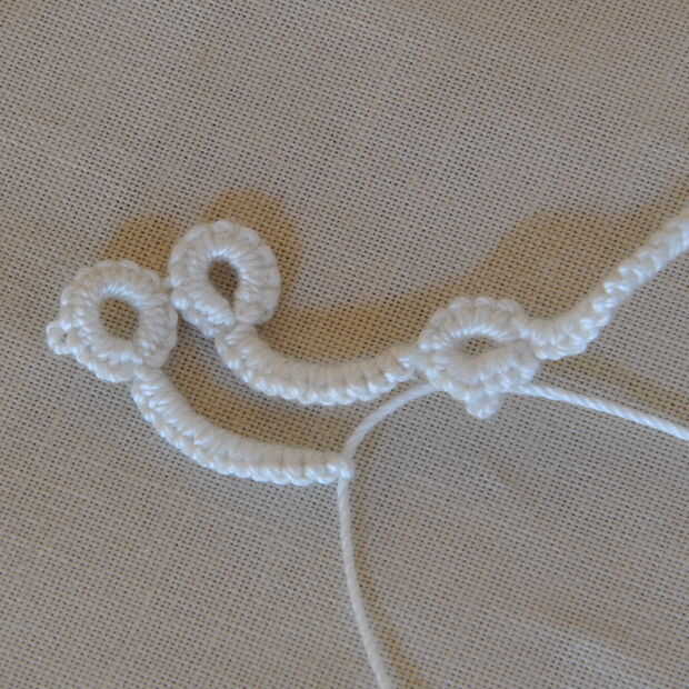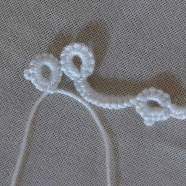 Cómo siempre hacer esto para muchas filas que desee. Son todos lo mismo porque los picots se ser usados para fijar otra cadena o para conectar el extremo colgante de perlas.