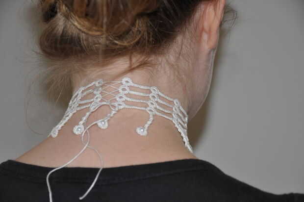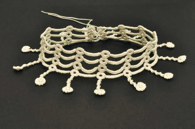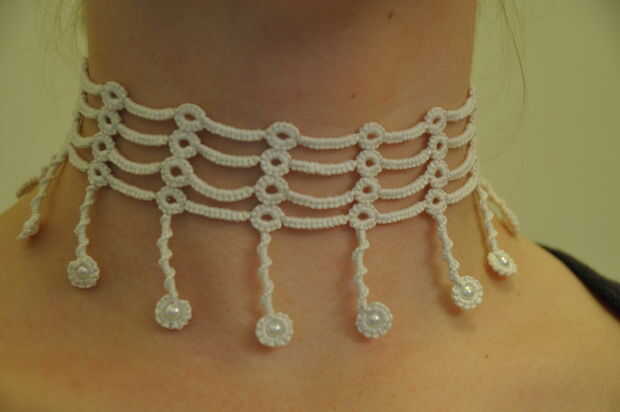 De una colección de patrones de ropas gargantilla diseñé basada en un motivo de daisy, es una simple gargantilla hecha con motivos más pequeños tatted cadenas juntas y largas añadidas para completar el look.Paso 1: Lo que necesitaráSe necesita:-Hilo