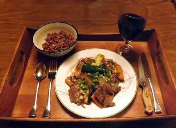 Esta es una comida realmente sana de proteína: carne de cerdo magra, coliflor fresca, setas shiitake y vainas de chícharos cocinan en una salsa de libre de gluten, libre de soya, teriyaki. Servir sobre arroz o Quinoa junto con la bebida de su elecció