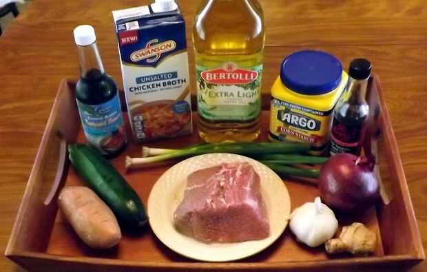 SOY libre, libre de GLUTEN, filete TERIYAKI con batatas y CALABACITAS (1 / 4 paso)
