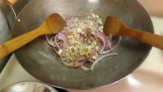 - Añadir el ajo y el jengibre raíz y salteado durante unos 30 segundos