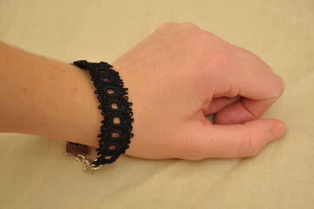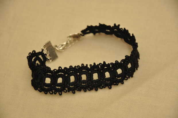 Si usted no sólo terminar con la frontera todo el camino alrededor, cerca, nudo, ocultar extremos, ajuste, y sujete el broche con un anillo de saltar a un extremo. Puede poner un anillo del salto sobre el otro extremo para conectarse o conectar la hebilla al otro extremo.
