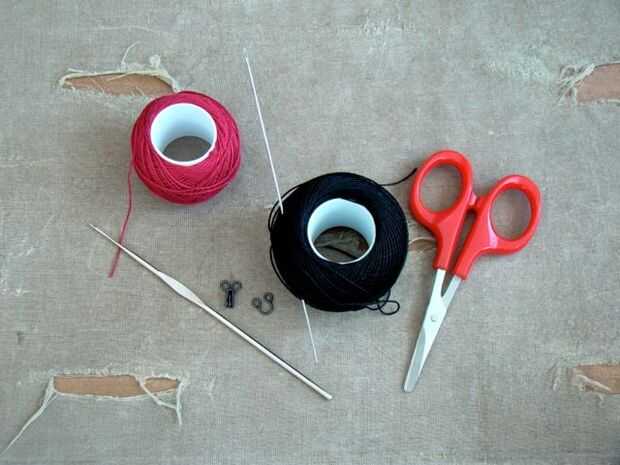 -Hilo de algodón tamaño 10 en dos colores diferentes, he utilizado negro y rojo