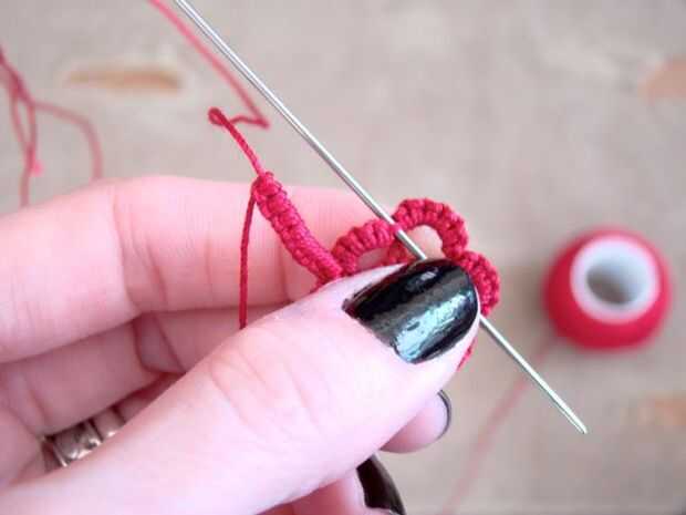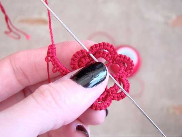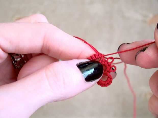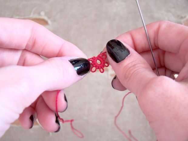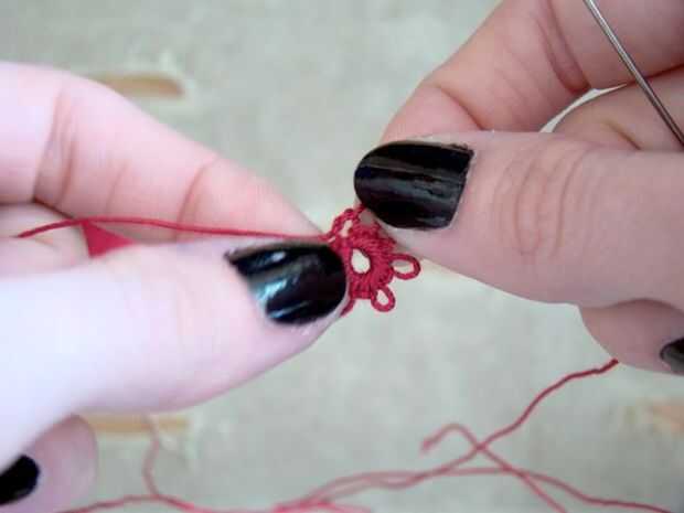 Un picot falso es simplemente una puntilla hecha por doble atar los extremos del hilo para hacer un loop del mismo tamaño que los otros picots.