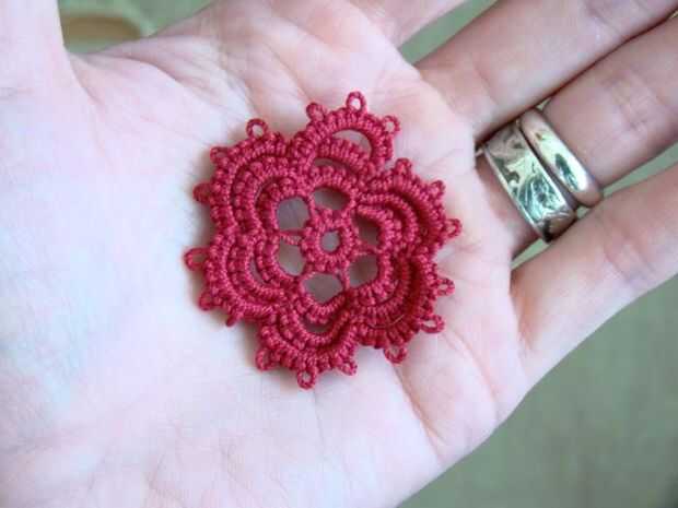 -Los pétalos de la flor son todas las cadenas se unió al poner el hilo a través de los picots del primer anillo en la primera ronda y aunque una puntada para rondas posteriores.