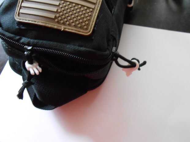 Puede ajustar cuidadosamente el tirón de la cremallera cuerpo y rosca el paracord a través de la anilla de la cremallera.