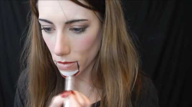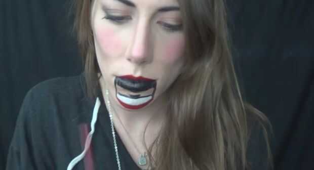 Con pintura de cuerpo negro me lleno en la boca, luego he utilizado un delineador de ojos jumbo nyx para llenar en los dientes, entonces cuerpo negro de la pintura para añadir las líneas de los dientes.