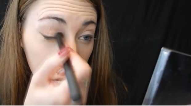 Luego tomó luz sombra de ojos marrón y poner eso en mi tapa, luego tomé un marrón más oscuro y lo colocó en mi esquina de mi ojo mezclando en el pliegue.