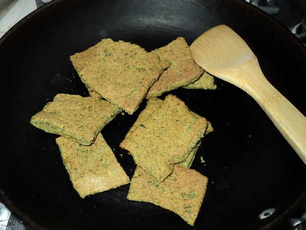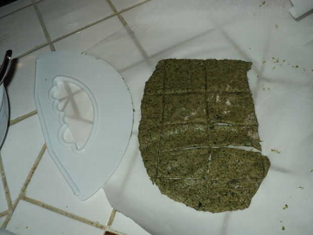 Debe ser bastante fina como una hoja de cartón corrugado. Cuanto más gruesa sea, más será como una galleta porque el interior será masticable y el exterior crujiente.