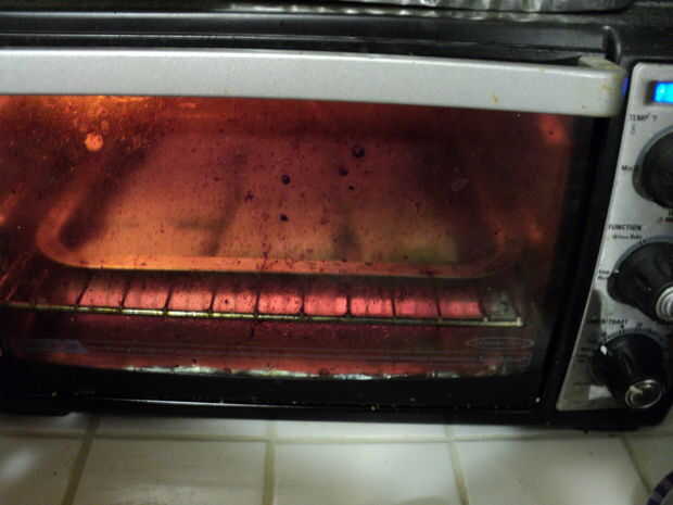 Usé mi horno tostador para "tostar" estos durante aproximadamente 15-20 minutos. No utilizo el ajuste BAKE (hornear). Mantener un ojo en ellos y cuando empiezan a dorarse.