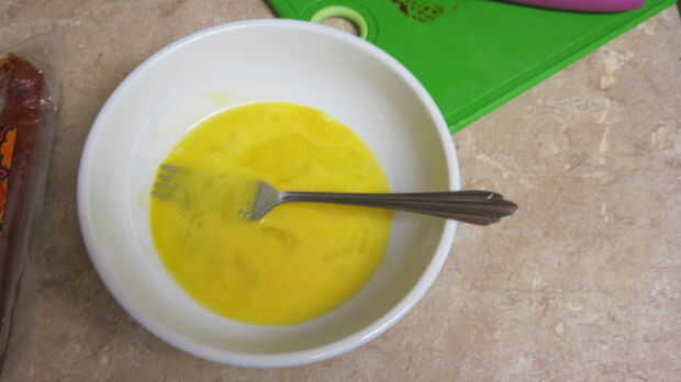 -Mezclar los huevos en un recipiente separado