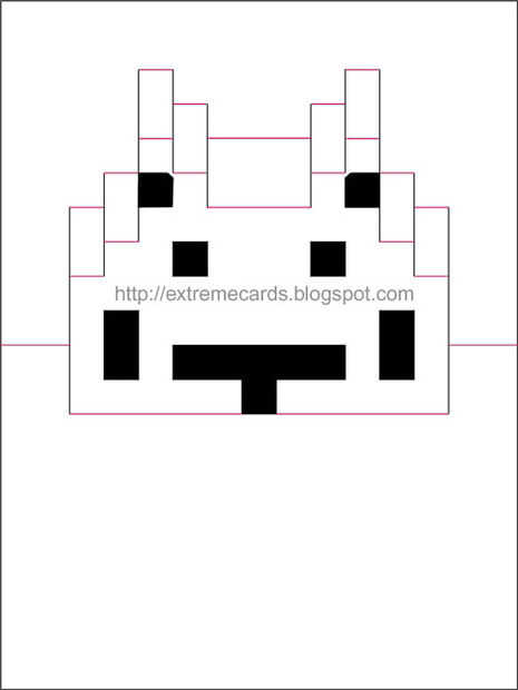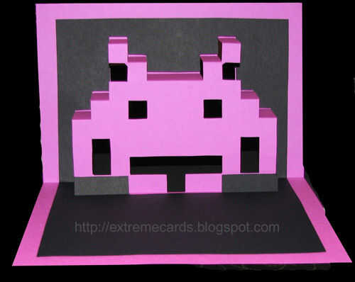 Cómo hacer una arquitectura de origamic pop-up tarjeta de invasores del espacio. Conveniente para el corte a máquina o mano.