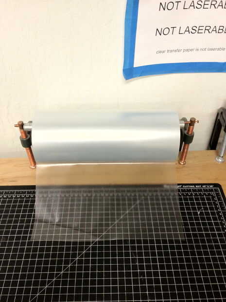 Después de hacer eso, usted quiere poner esta cinta de la transferencia, que es de papel o plástico con un lado adhesivo (menos pegajoso que la parte posterior del vinilo) sobre el vinilo, para que pueda aplicar el vinilo en una superficie de vidrio. Utilicé el tipo de plástico, pero yo prefiero el tipo de papel porque parece más fácil de quitar. Una vez que pones una capa de cinta de transferencia en la cima de tu vinilo, alíselo con una escobilla de goma para que sea agradable y plana con mínimas burbujas.