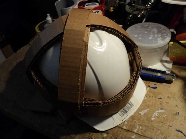 Puesto que el casco tiene un pequeño borde y salientes de su sistema de arnés, pegué hasta topes de cartón adicionales para el casco parar contra.