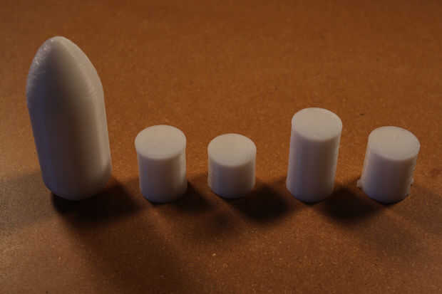 Imprimir cada una de las partes que se muestra con la configuración de su preferencia. Usé blanco PLA imprime a 205 grados centígrados con 4 perímetros (2 mm) y un relleno de 20%. Esto pesaba 300g cuando me costo $9,00 en plástico.
