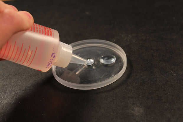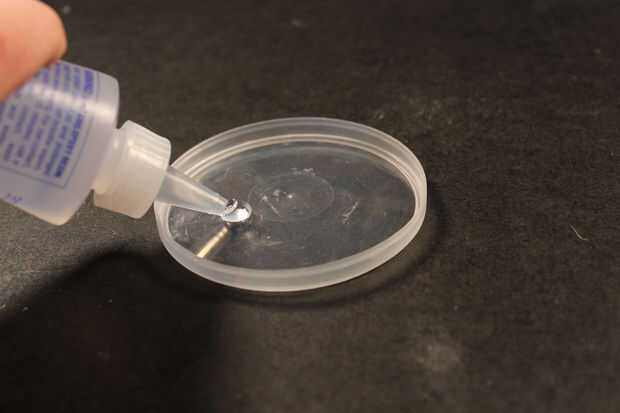Pour- Poner la relación descrita en el adhesivo en un recipiente pequeño que no les importa arruinar. Mezclé lotes pequeños por eso no perder material (5 min no es mucho).