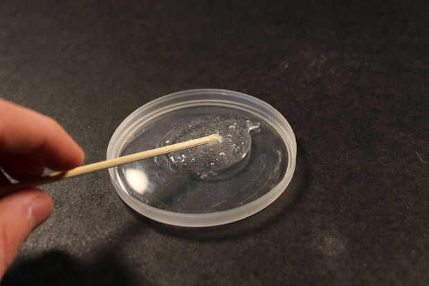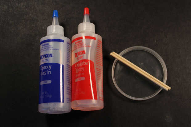 Siga las instrucciones de su adhesivo para obtener los mejores resultados. Mi epoxi tenía una proporción de uno a uno de resina a endurecedor. Hacerlo en un área con ventilación porque no huele bien en todo.