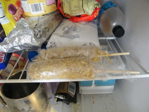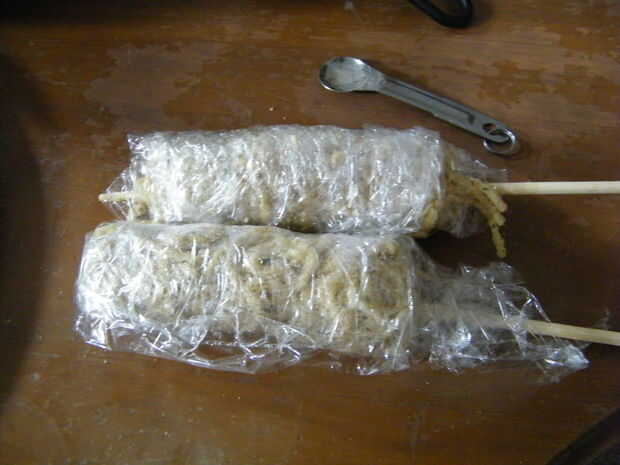 Rodillo pasta pop en las migas de pan y envolver firmemente en el abrigo de saran.