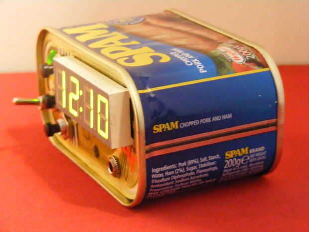 el explosivo Alarm Clock es un reloj de alarma completamente funcional con un antiguo reloj alarma pitido.Te hace falta:1. electrónico despertador2. cartón rollos3. envases de papel4. viejos cables5. pegamento6. cinta de aislar7. cortadorPaso 1: desm