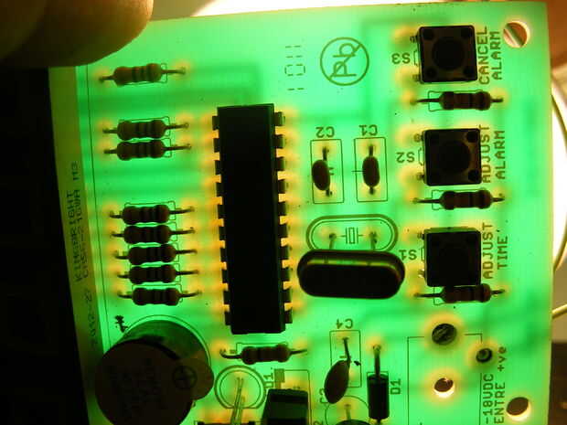 el rastro positivo que alimenta al temporizador botones y xtal.