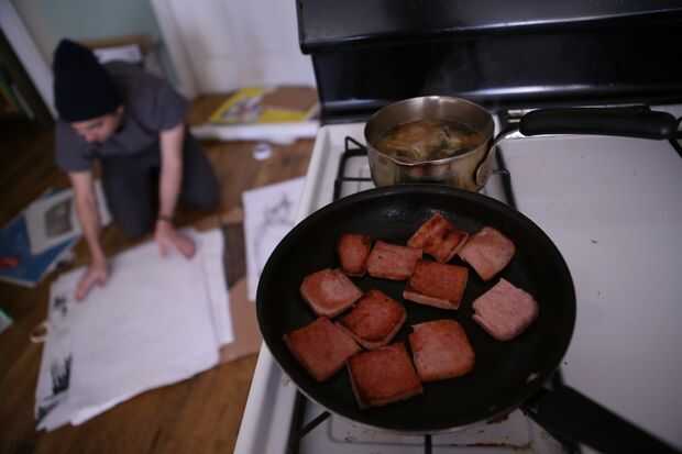 4. a fuego medio, cocinar el spam y cuando un lado marrón y tostado, darle la vuelta. Spam produce mucha grasa, por lo que no es necesario poner aceite en la sartén. Ayudar a absorber el exceso de grasa con papel absorbente. No hay ninguna técnica real en cocina spam. Asegúrese de que no queman o van cruda. Algunas personas como tostado.