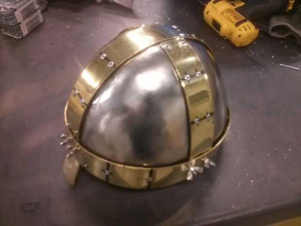 Luego perforar 1/8" sobre cada 2.5" (o menos les espacio muy bien) en los bordes de cada pedazo de la bóveda y del remache con una 1/8" remache (otra vez 1/4" o 1/8" dependiendo de cómo muchas placas está en ese punto), empernar a través de la estructura del casco. Si sigue tirando un remache a través de o bien utilizar un remache más largo o utilizar una arandela del remache en la parte interior para agregar fuerza. Dibujé las líneas de guía para mantener los remaches alineados muy bien.