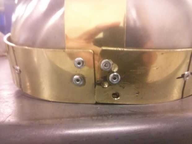 Observe la parte superior y detrás todavía mirar bastante feo; a ser cubiertos con las cúpulas de bronce pequeña en el siguiente paso.