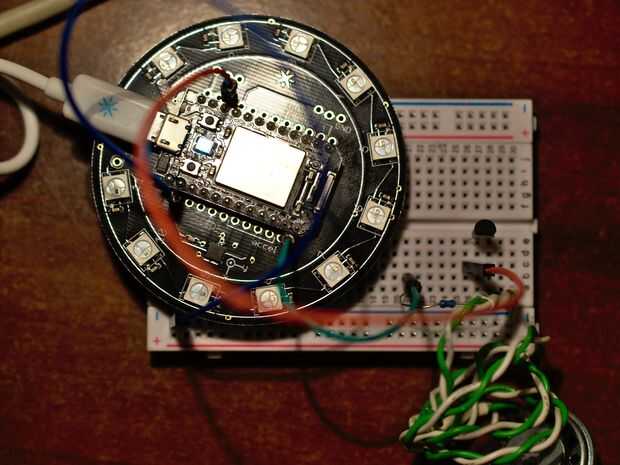 El botón de la chispa tiene 11 LEDs RGB de alta potencia, los usaremos para crear la luz de estado de ánimo, el núcleo de la chispa basta con pulsar en el botón de chispa para coincidir con el contorno de la PCB como en la foto de arriba y rehacer las conexiones basadas en el paso anterior. Si has hecho todo bien, el hardware debe ser listo, sólo tiene que añadir un difusor; utilizamos papel de oficina, pero hay muchas maneras de hacer esto, no dude en experimentar.