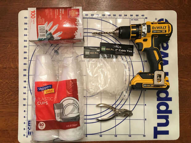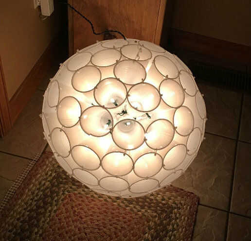 Tuve un montón de copas sobran y un montón de ataduras de cremallera por lo que decidí hacer una bola de la chispa. Estas bolas de la chispa es grandes para adornar los días de fiesta o para una boda. Puede utilizar cualquier color luces y colores de tazas para darle cualquier aspecto que desee.
