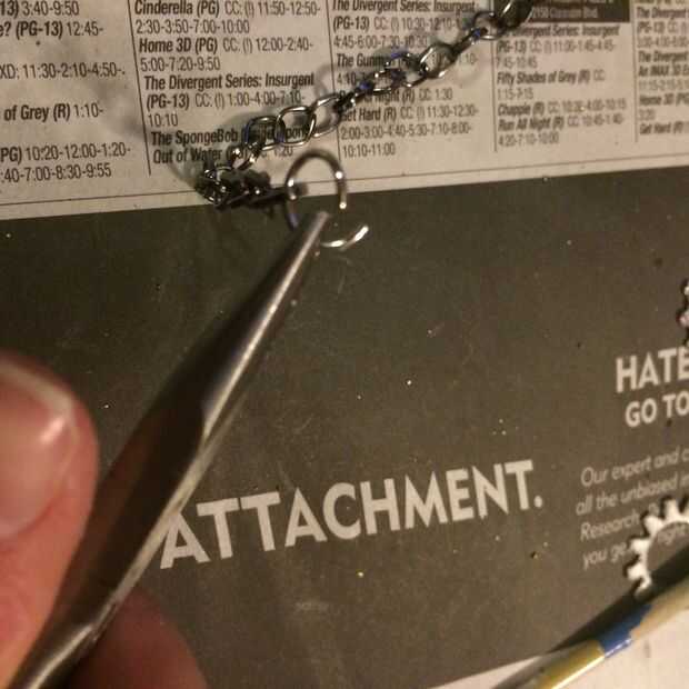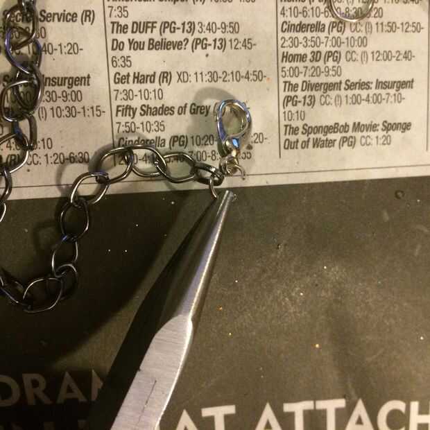 Sujete su broche en el extremo de la cadena de ese lado usando un anillo del salto (usando el mismo método como se explicó antes).