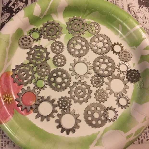 1) pone a su primer grupo de engranajes en un plato de papel. Asegúrese de que ninguno de ellos se superponen.
