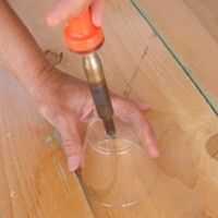 (fotos muestran 9 oz tazas pero se trabaja con el pequeño mini tazas) Con un soldador caliente o leña, haga un orificio en la parte inferior de los 50 tazas.