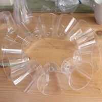 Organizar 12 mini-tazas en un círculo. Unirlos entre sí en parte inferior de la taza, una articulación entre sí con soldadura de fusión. O discontinuas. O perforadora y zipties. Este anillo es la primera capa.