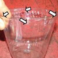 Con una perforadora (la clase de agujeros de perforación en papel), perfore 4 orificios espaciados uniformemente alrededor de la parte superior de todos 50 tazas. Coloque los agujeros justo debajo del labio levantado. Cada agujero debe tiene un orificio justo enfrente, pero sólo la globo ocular la colocación.