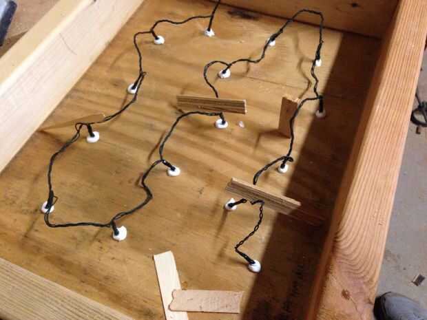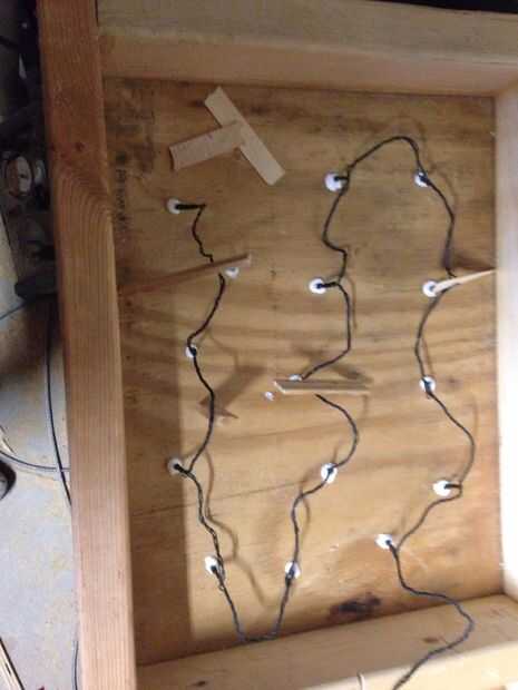 pegué las luces a la madera contrachapada con un poco de silicona transparente. Como se puede ver que tuve que usar unos tornillos para apoyar el bulbo vertical. No distribuido uniformemente