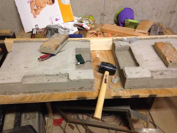 Desarmar la forma era fácil con una sola excepción. El silicio que puse en las esquinas. Todavía no era demasiado malo. Un poco de sellador de concreto y tomar su descanso el lugar. Para mí la yarda delantera. Le puse una tira de silicio de tamaño bastante alimento para montar a los ladrillos.