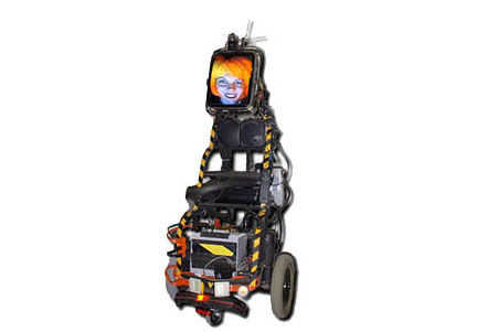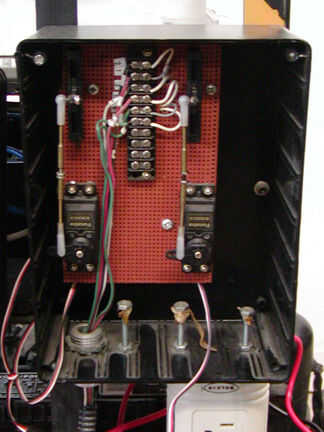 VEX el kit incluye muchas piezas grandes, incluyendo servos estándar con una limitada 180 * rango de movimiento, pero también dos full-rotación de motores servos que girar completamente alrededor como motores de corriente continua. Son convenientes ya que simplifican los requisitos para crear el movimiento de rotación completa de la rueda. (El robot Sparky original tenía 2 servos de alcance limitado, pero éstos no conducen las ruedas del robot directamente. En cambio ellos movían físicamente los potenciómetros que estaban conectados a la silla de ruedas original controla una solución aparentemente compleja de Rube Goldberg-como que ha funcionado sorprendentemente bien durante años, pero todavía pone nerviosos la mayoría de los ingenieros!).
