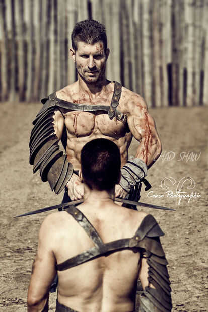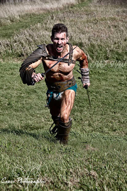 La mayoría de lo que aprendimos sobre cómo crear el traje, se supo en Instructables. La serie de Spartacus de Starz ha inspirado este traje. Somos grandes fans. Para asegurarse de que estaba creando el traje exactamente, investigué a gladiadores romanos y llegó a tener una interesante lección de historia! Utilicé una mezcla de la vestimenta real de Spartacus y lo usó Gladiador tracio estilo. Como en la mayoría de la serie Spartacus, opté por ir sin casco. Investigué cada pieza de la vestimenta, incluso los zapatos.
