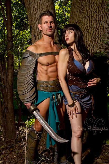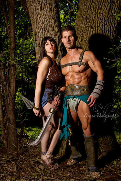 Theokoles: compramos la peluca y el abrigo de la cintura de una tienda de disfraces y soportó la correa de la cintura. ¡ Fue perfecto! También hemos añadido más material negro de las camisetas viejas a su cintura y espinillas. (Jugué tanto Spartacus, Theokoles, retocado en quién es).
