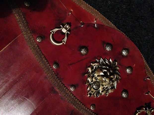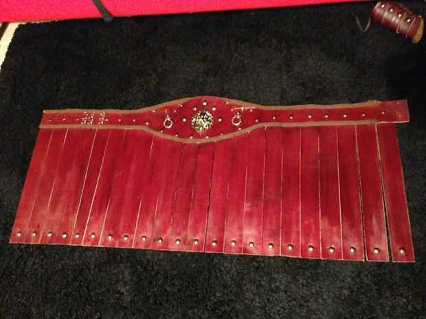 Cortar un montón de bandas para la falda, conectar a la banda con el uso de tachuelas, también utilizar los clavos para detalles.