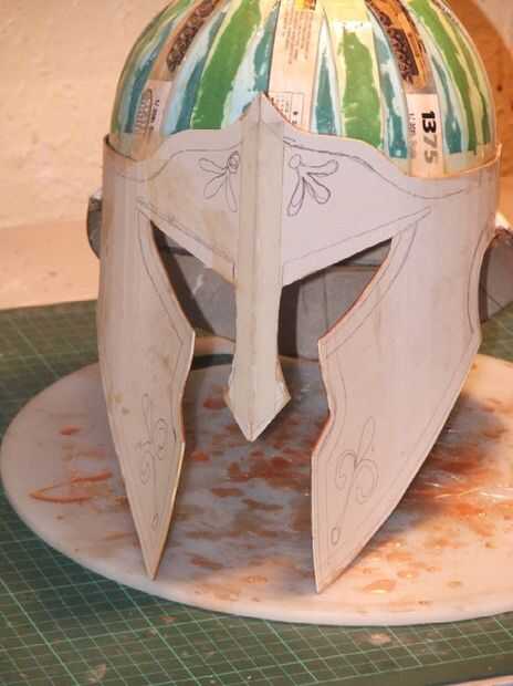 A continuación, utilizando un trozo de papel, más o menos sacar cualquier decoración de la superficie que desea utilizar. Una vez tengas el diseño que desee, dibujarlo hacia fuera sobre la superficie de la tarjeta de ustedes casco utilizando un lápiz.