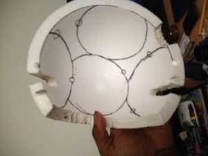 Ahora con nuestros materiales de su tiempo a seguir adelante y añadir diseños únicos a la cáscara con el uso de soldadura. Antes de hacer nada impregnar siempre es bueno establecer su trabajo ya sea con lápiz o marcador. Ahora, esto será fácil desde calor extremo corroe poliestireno y el soldador nos dará esa mano firme que tenemos que tallas limpias nítidas. PRECAUCIÓN por favor donde A pintura máscara cuando talla y IT IN A NICE ventilado porque los humos que no son mortales pero sentirá mareado.