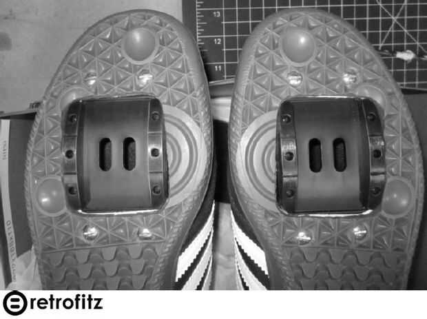 solo una forma rápida de hacer zapatos de montaña si tienes zapatos viejos de la carretera con calas SPD. Solo pegamento de neumáticos de montaña hasta el fondo!
