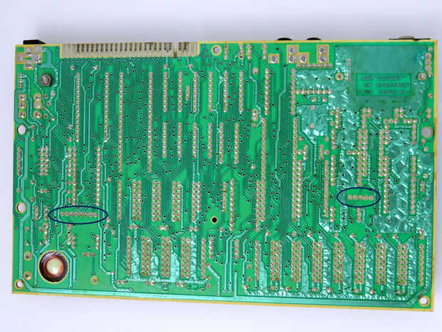 La última parte de la preparación para el Speccy es quitar la placa base (sólo hay uno o dos tornillos) y después desoldar los conectores de cinta. Si estás incómodo con desoldering, otra vez eBay tiene cubierto. Apenas pedir uno de 5 pines y un conector de 8 pines. Si es cómodas de quitar los conectores, son muy fáciles de identificar en la parte inferior; los conectores son las pistas horizontales solamente de pernos (ver fotos 3 y 4). Eso es todo. Ahora debería tener una caja vacía con el teclado (Foto 5) y dos conectores.