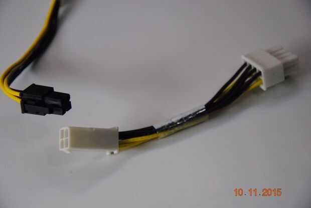 Después de jugar con mi alimentación que me enteré de otro conector que tiene sólo un cable negro y un cable amarillo, decidí usar aquél. (Cuadro #1)
