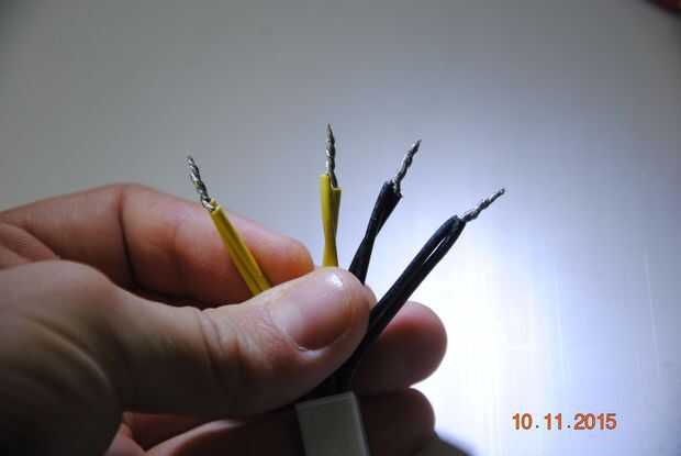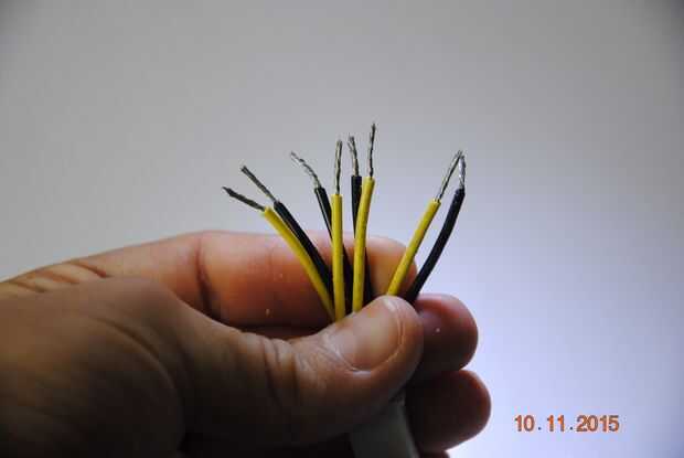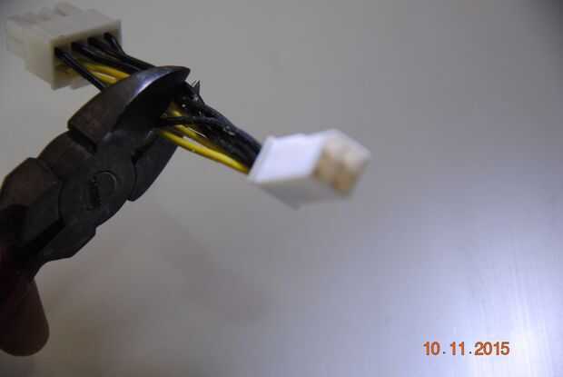 En primer lugar, cortar el conector con un alicate (cuadro #1) usted debe terminar con ocho cables (negro amarillo + 4 de 4)