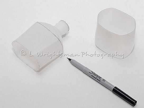 Marque una línea guía similar en el hombro superior de la botella con el sharpie y corte en esa línea también.