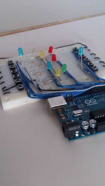 1.) conectar un lado de cada uno de seis jugadores de 2 botones a A0-A5 y conecte el otro extremo a tierra.