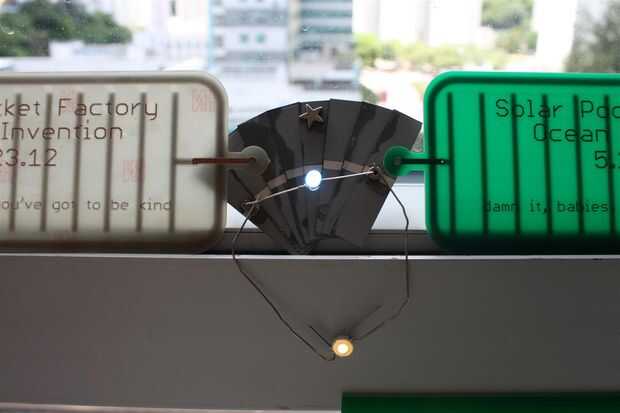 Aquí es fácil poner cosas apagado--la luz aventó. Un arreglo aventado de pequeñas células solares (solettes) llevó a cabo junto con pegamento. No soldar es necesario para este proyecto. Deben tomar unos 10 minutos para completar. Y al final, tendrás una luz solar que funciona en el día (que es prolijo, pero inútil) o de la noche (mediante la adición de un paquete de baterías), de las células picosolar crudo. MATERIA PRIMA!